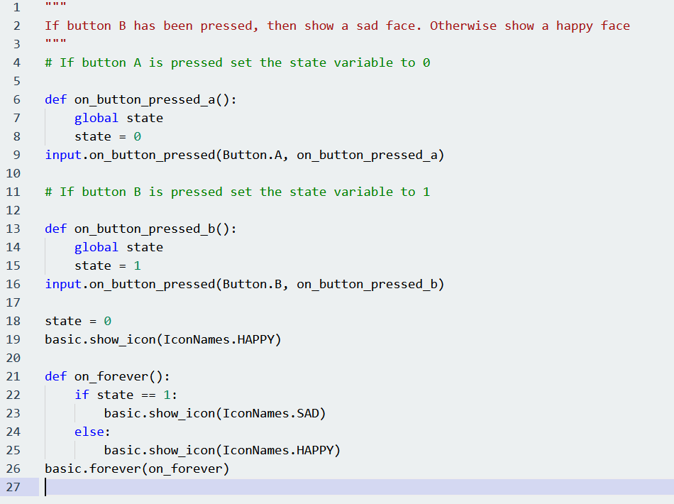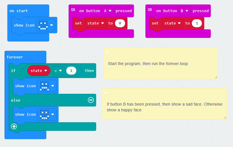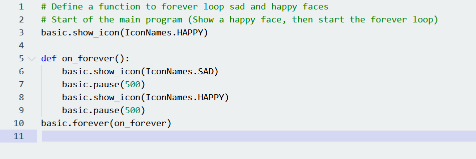 - Letās write a function to make the face switch between sad and happy in the forever loop
