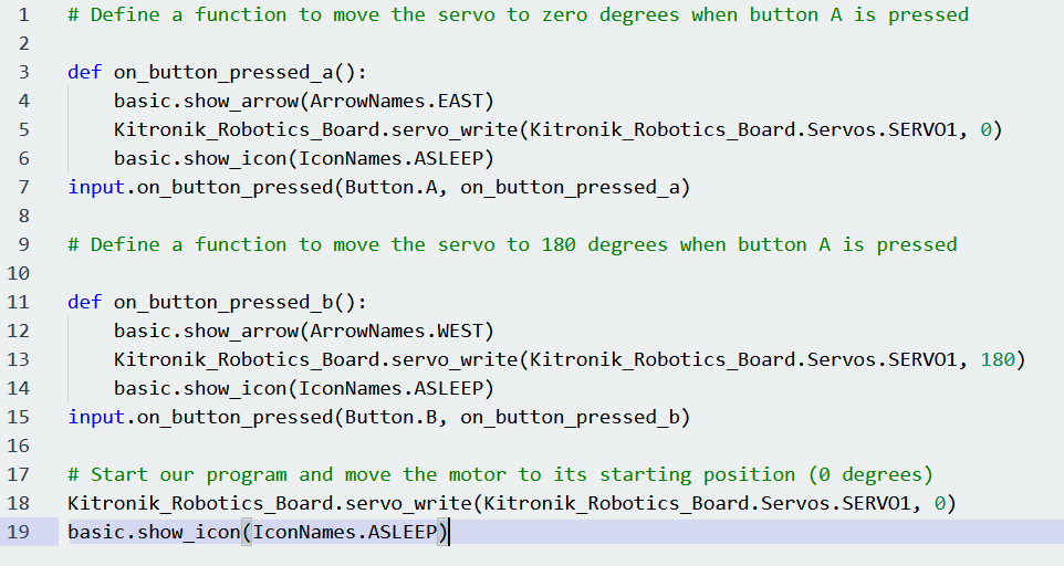 We want to use the buttons to move the motor into different positions. To do this lets write a program