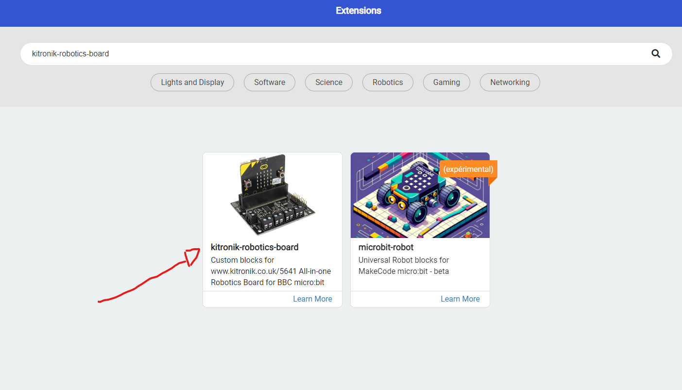 - An extension is a code library that allows you to use additional functionality (such as controlling the robotics board)